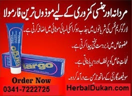 increase your penis size.Largo cream is uncommonly producing for the male upgrade supplement.The principle capacity of largo cream is to expanded Orgasm Function and hold blood in the corpora cavernosum and give the aftereffect of increment in size and width circumference and harder erection. Largo cream improve sexual weakness and increment stamina during sexual activity. Largo cream is utilized for all age of the individuals (15-80)year.